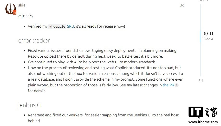 IT之家 12 月 7 日消息,在协助更新 Ubuntu 错误追踪系统的过程中,GitHub Copilot 虽在部分任务上发挥了作用,但仍出现明显错误。