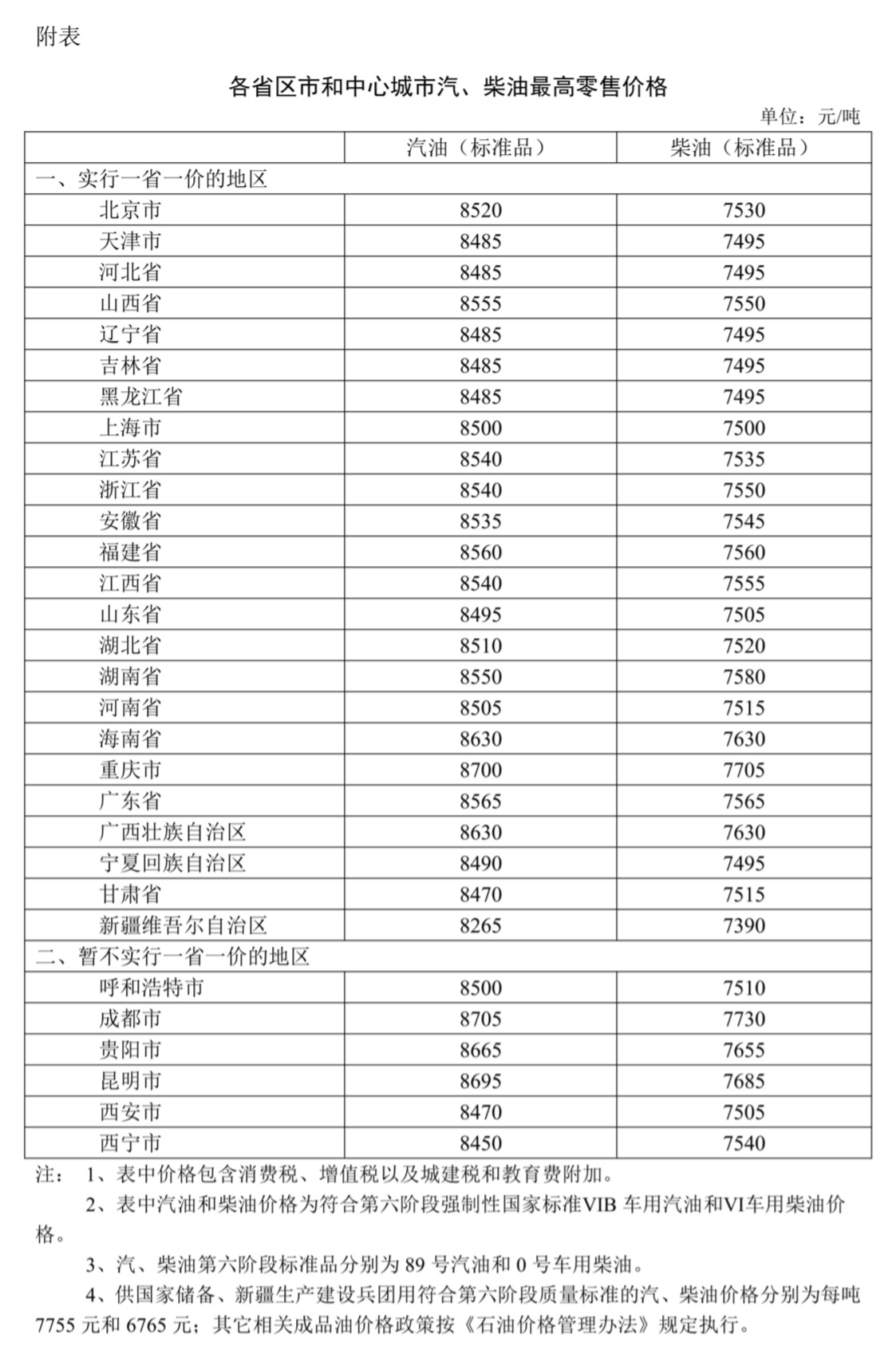 | 95 号汽油 | 调整幅度(元 / 升) | 调整后价格(元 / 升) |
