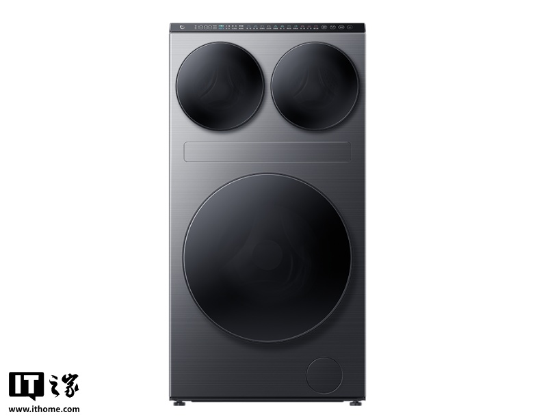 该洗衣机支持一级能效,配有三筒 DD 电机、三筒独立水路,还支持联动米家 App。