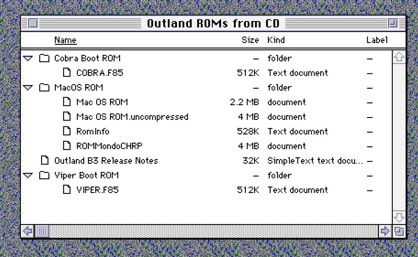 这些光盘的刻录时间集中在 1997 年 5 月至 9 月之间。除了操作系统核心文件外,光盘中还包含名为“Outland 1.1B”的 Mac OS 8 相关软件、详细的兼容性说明文档、Mac OS 授权扩展文件,以及用于适配“较新”硬件的系统启动程序(System Enabler)。