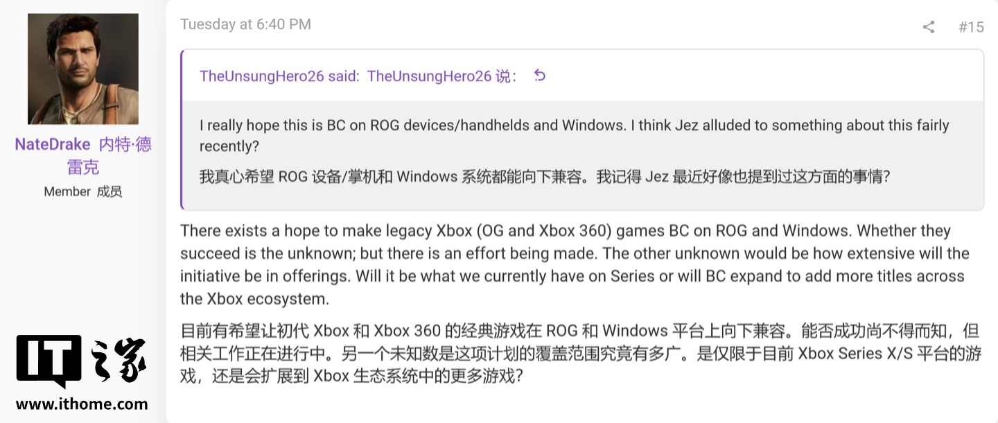IT之家 12 月 10 日消息,消息源 NateTheHate2 昨日(12 月 9 日)在 ResetEra 论坛爆料,微软正积极探索向下兼容(Backward Compatibility)方案,希望让 Xbox 360 及初代 Xbox 的经典游戏能够在 Windows PC 及 ROG Xbox Ally 等便携掌机上运行。