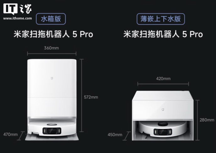 小米米家扫地机器人 5 Pro 开售于 8 月 9 日,薄嵌上下水版官方定价 5999 元。