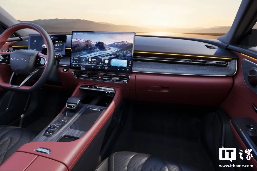 艾瑞泽 8 PRO 400T 的内饰采用黑红撞色,搭配曜黑运动穹顶,进一步强化运动氛围。该车配有 2.5K 分辨率的 15.6 英寸中控屏、智能电动尾门、全新高德地图导航等,搭载 8155 智能座舱,还有手机互联功能(支持 CarPlay、HUAWEI HiCar、Carlink)。
