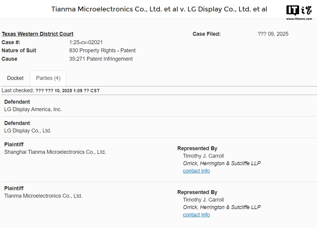 IT之家查询发现,韩联社今年 6 月报道称,LG Display 向美国得克萨斯州东区联邦地区法院针对天马微电子提起侵权诉讼,指控天马侵犯 LG Display 的七项技术专利权。如今天马反向起诉 LG Display,双方后续交锋进展如何,我们拭目以待。