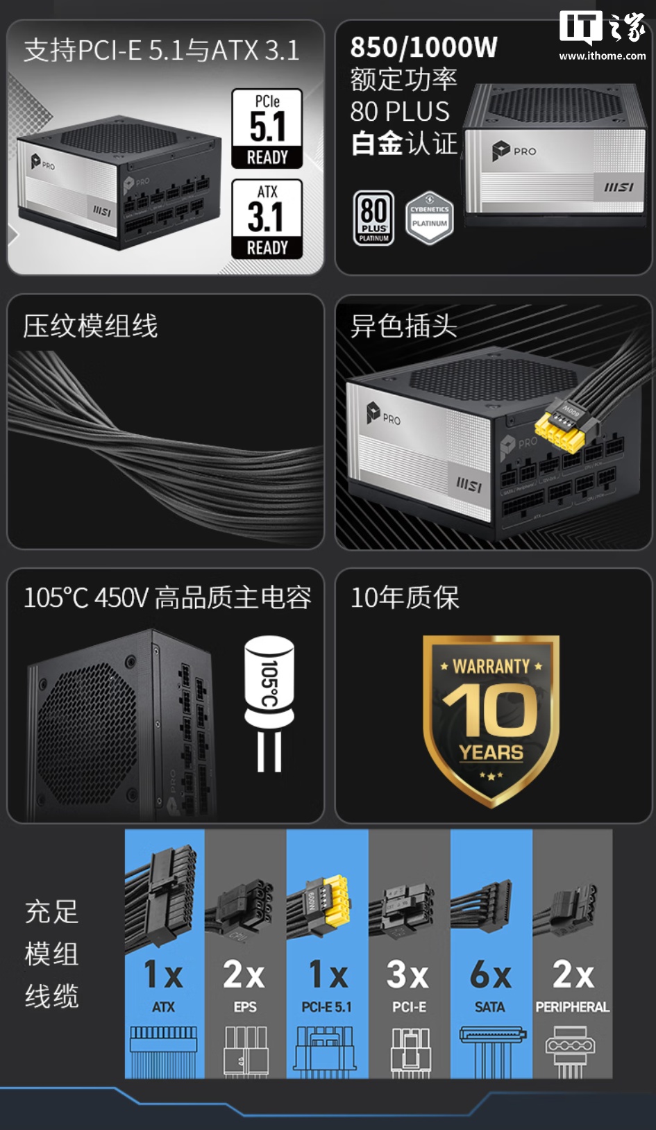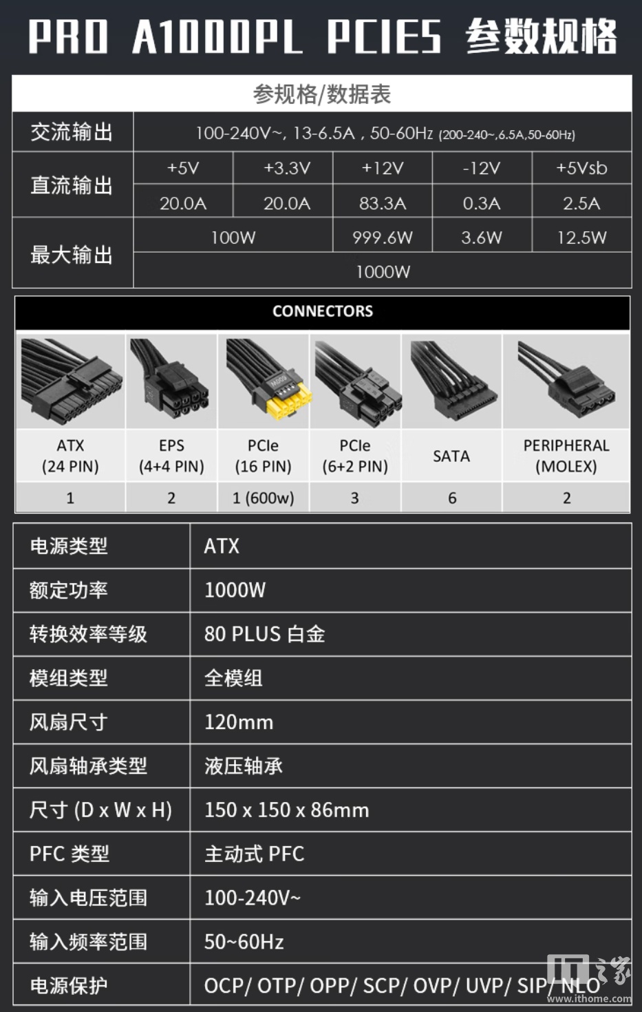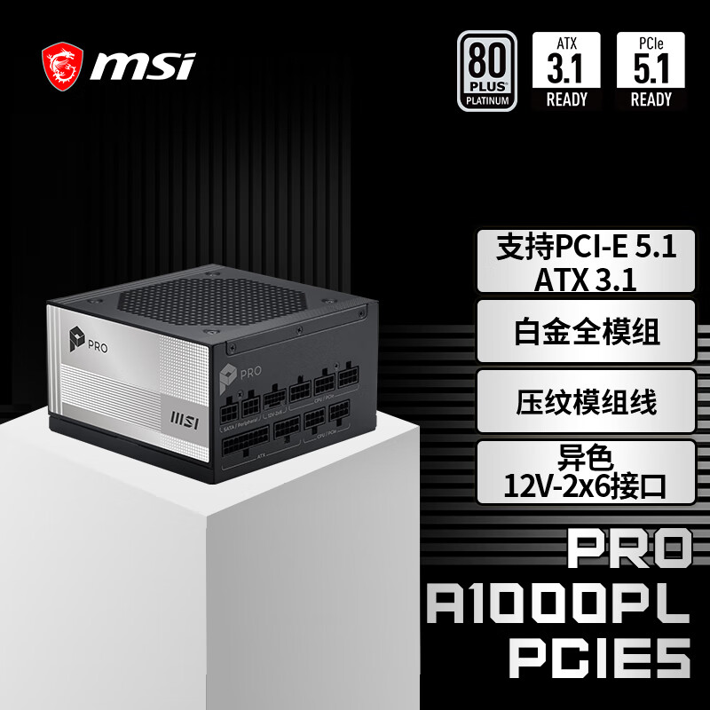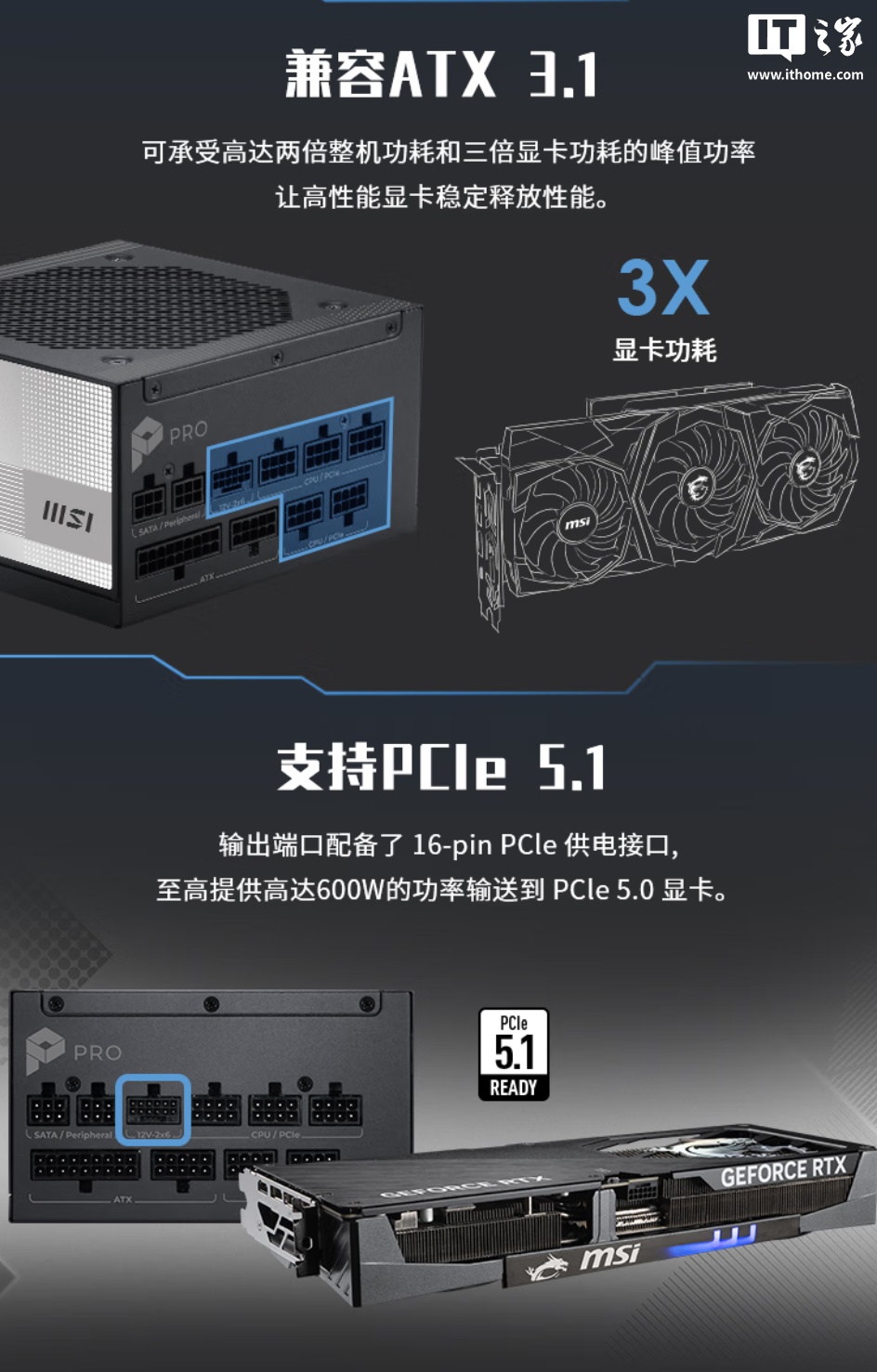 IT之家 12 月 12 日消息,微星 PRO A1000PL 电源现已开启新品预约,兼容 PCI-E 5.1 与 ATX 3.1 标准,额定功率可达 1000W,售价 799 元。