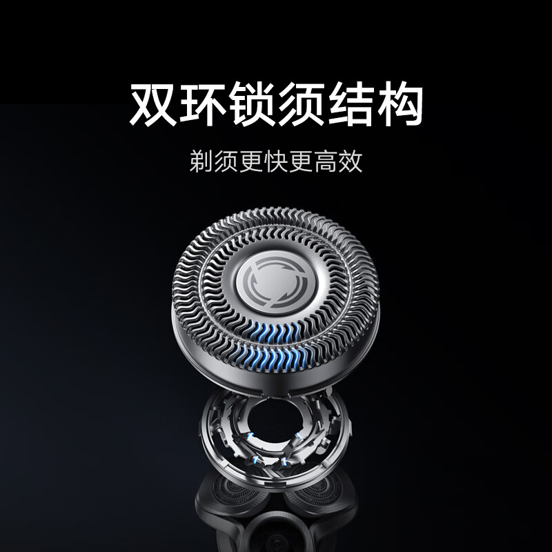 据介绍,这款剃须刀内置双环波纹刀网,相比传统直槽刀网面积更大,捕须切剃效率更高,配合双环精钢刀片交叉往复、环抱切割,可让剃须体验更快更高效。