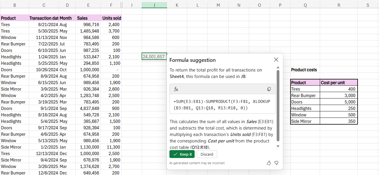 更贴心的是,该工具不仅提供公式,还会详细解释背后的逻辑,并在网格中直接预览计算结果,用户确认无误后即可应用。