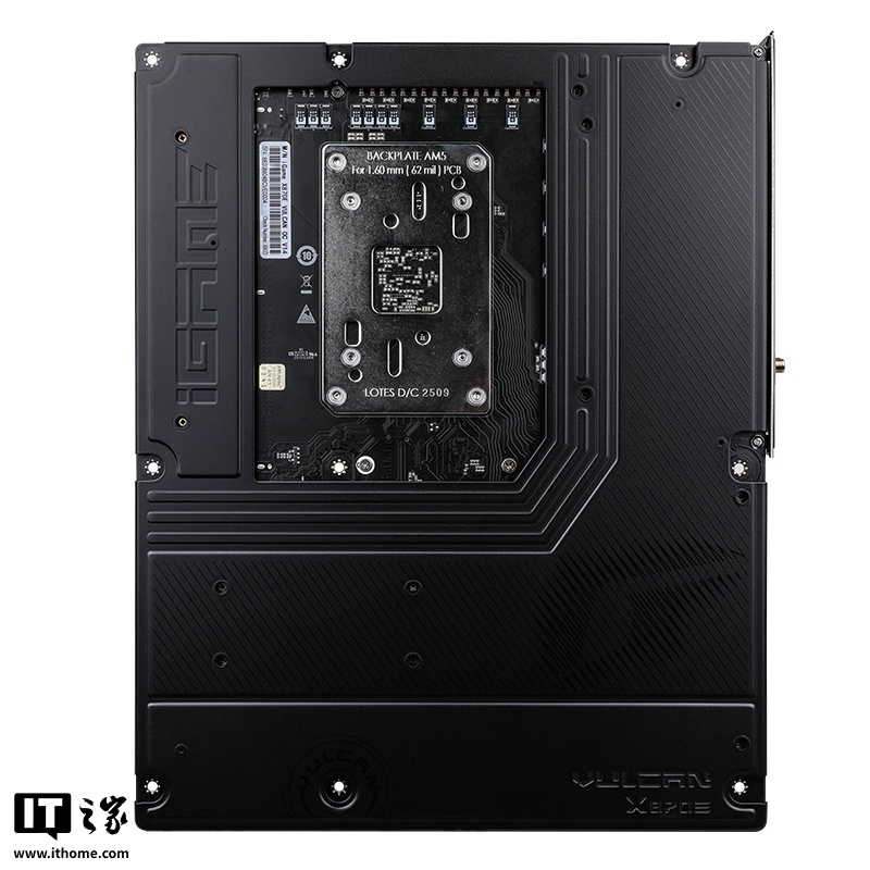 据介绍,这款主板配备 AM5 CPU 插槽,支持 AMD Zen 5 和尚未推出的 Zen 6 架构 CPU,配备双 8-pin CPU 供电接口,拥有 18+2+2 相(IT之家注:110A)高规格供电,专为超频设计,搭载两个 DIMM DDR5 内存插槽,配有 1DPC 设计,可轻松支持 DDR5-10000 内存。