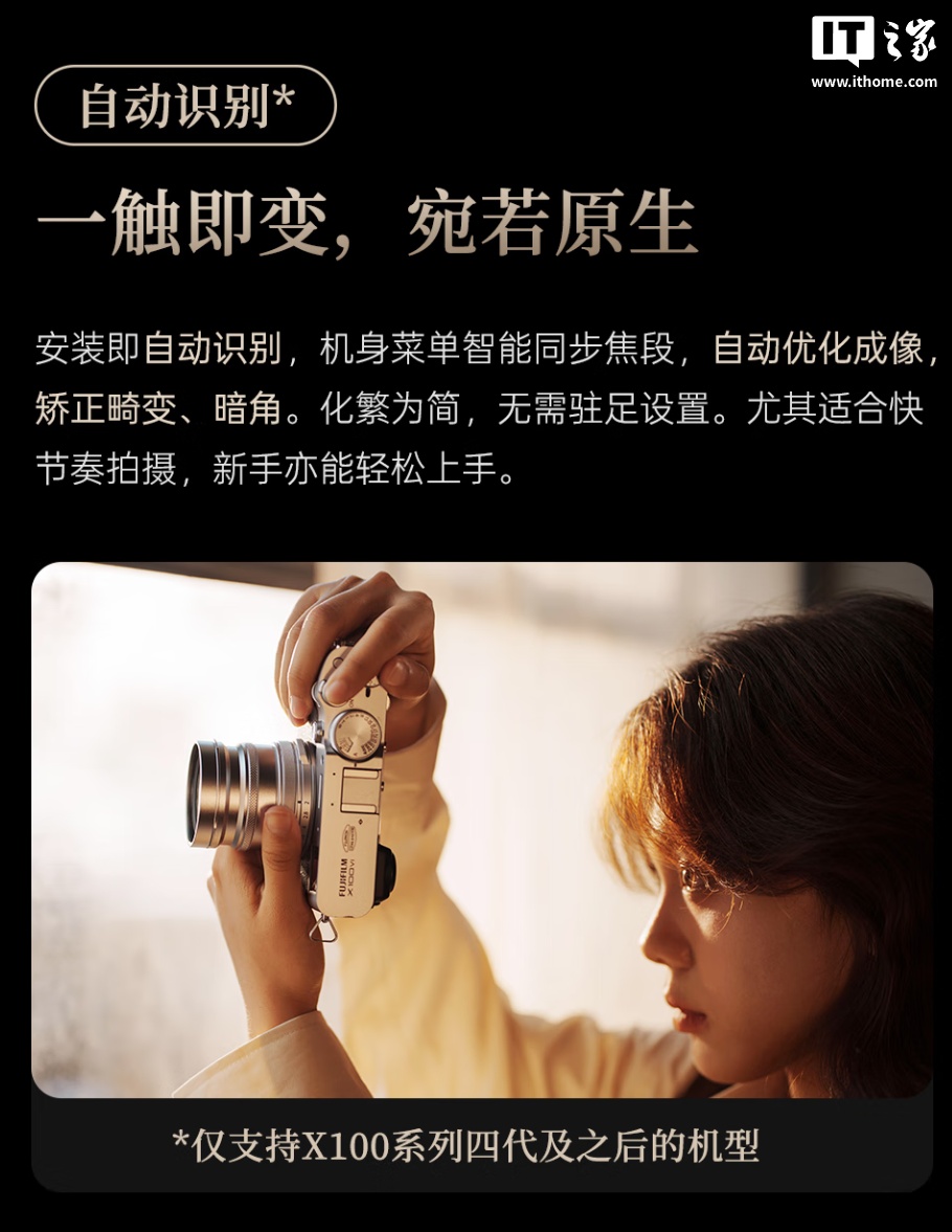 此外,这款附加镜在装上后光圈数值保持不变,还可在机内菜单智能同步焦段,自动优化畸变、暗角等。