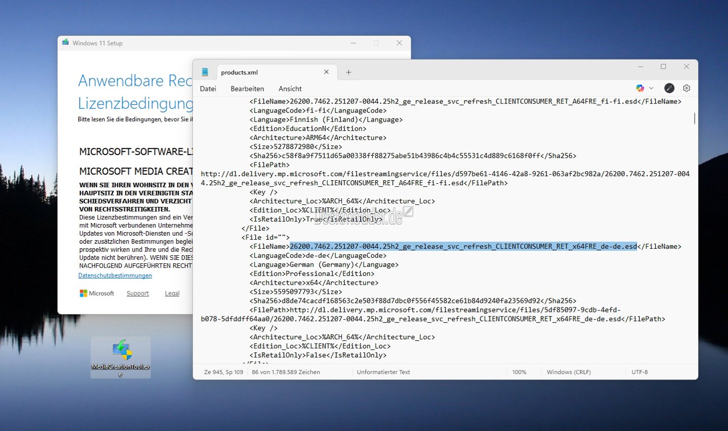 IT之家援引博文介绍,媒体创建工具版本号虽然仍停留在 10.0.26100.7019,但微软在服务器端替换了其对应的后台下载包,意味着用户现在运行该工具时,将直接下载到与“周二补丁日”同步的 Windows 11 25H2(Build 26200.7462)镜像文件,而非旧版系统。