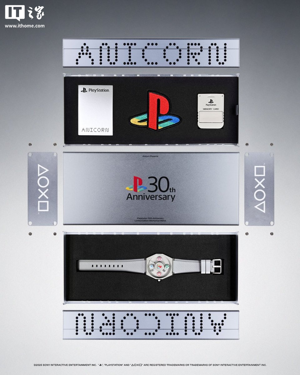 IT之家 12 月 14 日消息,索尼 PlayStation 最近联合 Anicorn 推出了一款 30 周年纪念腕表,采用机械机芯设计,并没有使用“烂大街”的石英机芯。