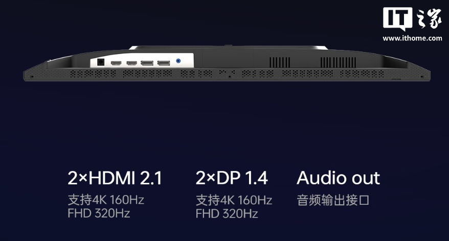 此外,雷神 JU27F160L 配有升降旋转俯仰支架,搭载双 HDMI 2.1 接口、双 DP 1.4 接口。