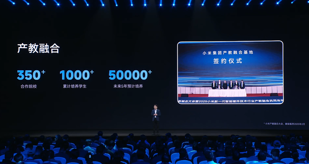 IT之家 12 月 17 日消息,在今天的 2025 小米人车家全生态合作伙伴大会上,小米核心系统部总经理牛坤介绍了小米集团产教融合最新进展: