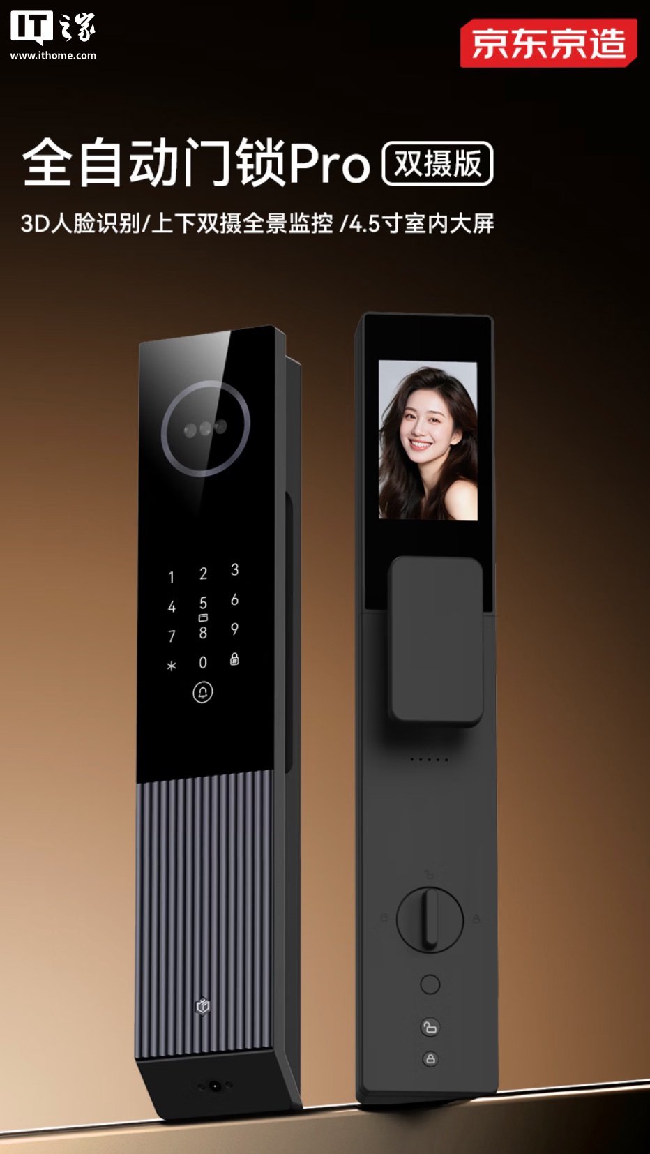 IT之家 12 月 18 日消息,京东京造现已上架智能门锁双摄版 Pro(具体型号为 S30),主打上下双摄、4.5 英寸内屏、AI 3D 人脸识别,定价为 1186 元,叠加国补和晒单后到手价为 899 元。