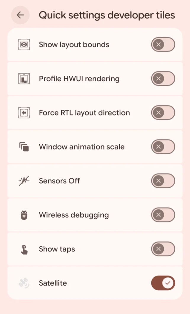 尽管目前的“卫星连接”页面在测试版中已具备雏形,并包含“试用演示”和应用列表等面向用户的 UI 设计,但该功能目前仍被隐藏在开发者选项深处。