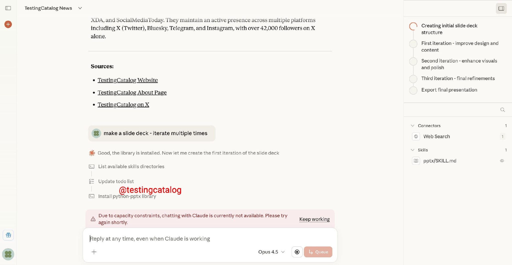 Claude 将运用不同的技能和 MCP 来实现目标。对于复杂的任务,它会生成需要执行的行动计划。