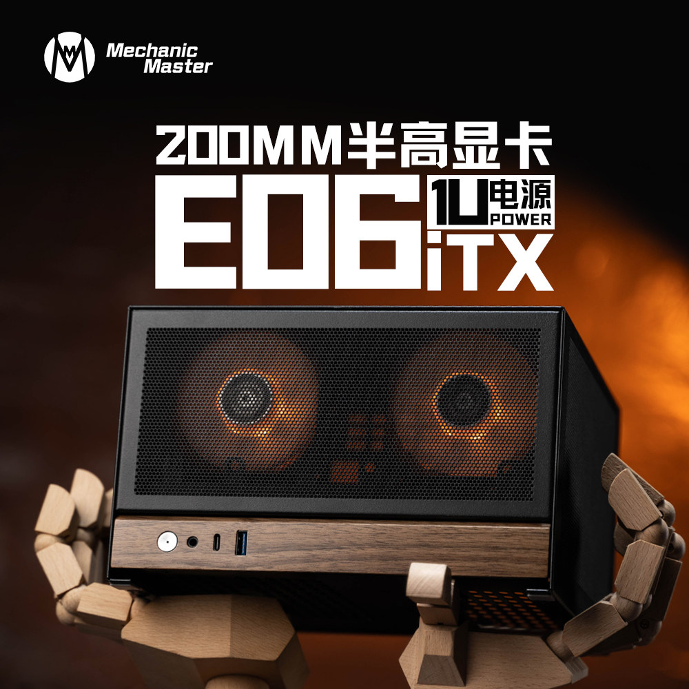 IT之家 12 月 19 日消息,机械大师今日推出了能量盒系列卧式 ITX 机箱新品 E06。该型号支持 70mm 高下压式风冷散热器、200mm 长度的双槽半高显卡、Flex ATX“小 1U”电源。