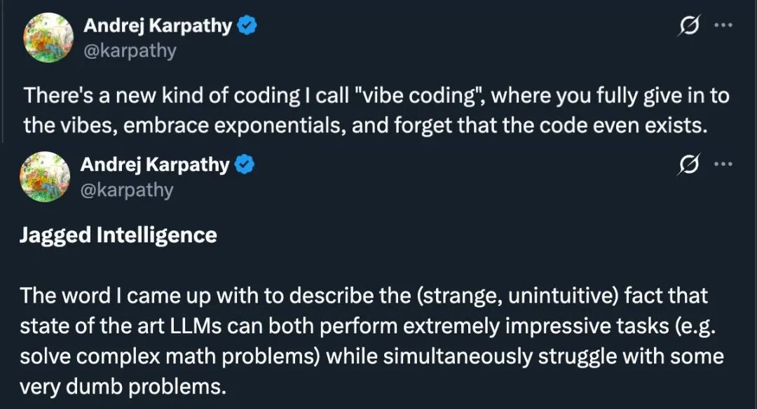 有意思的是,氛围编程和前面提及的锯齿智能都是由卡帕西命名的,但彼时的他还并未料到,这两个词会成为 2025 年 AI 发展的最佳注解。