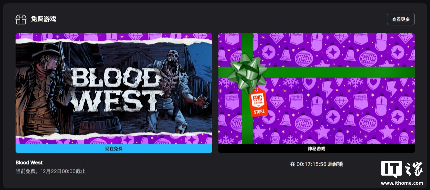 IT之家 12 月 21 日消息,Epic 连续喜加一【第 4 弹】公布 ——《Blood West - 浴血西部》,原价 78 元,限时一天免费领取。