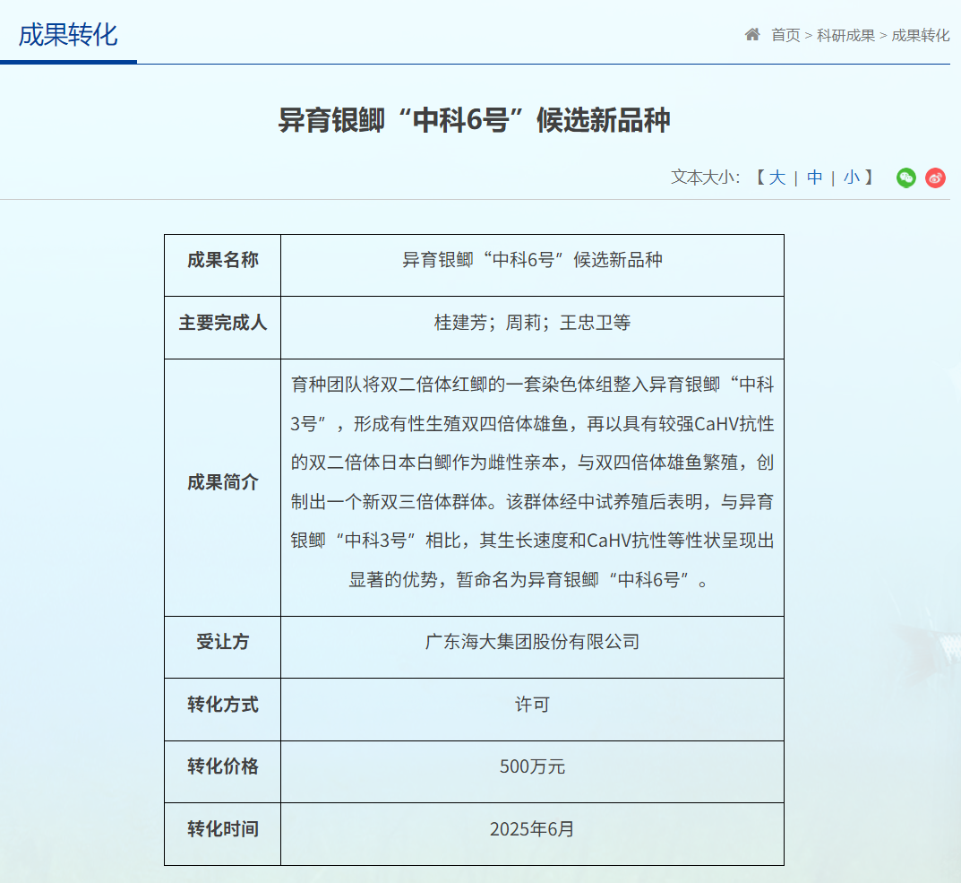 IT之家从报道获悉,依托这项技术培育的“中科 6 号”候选新品种,在生长速度、养殖存活率和饲料利用率上均实现了大幅提升,综合性能优异。