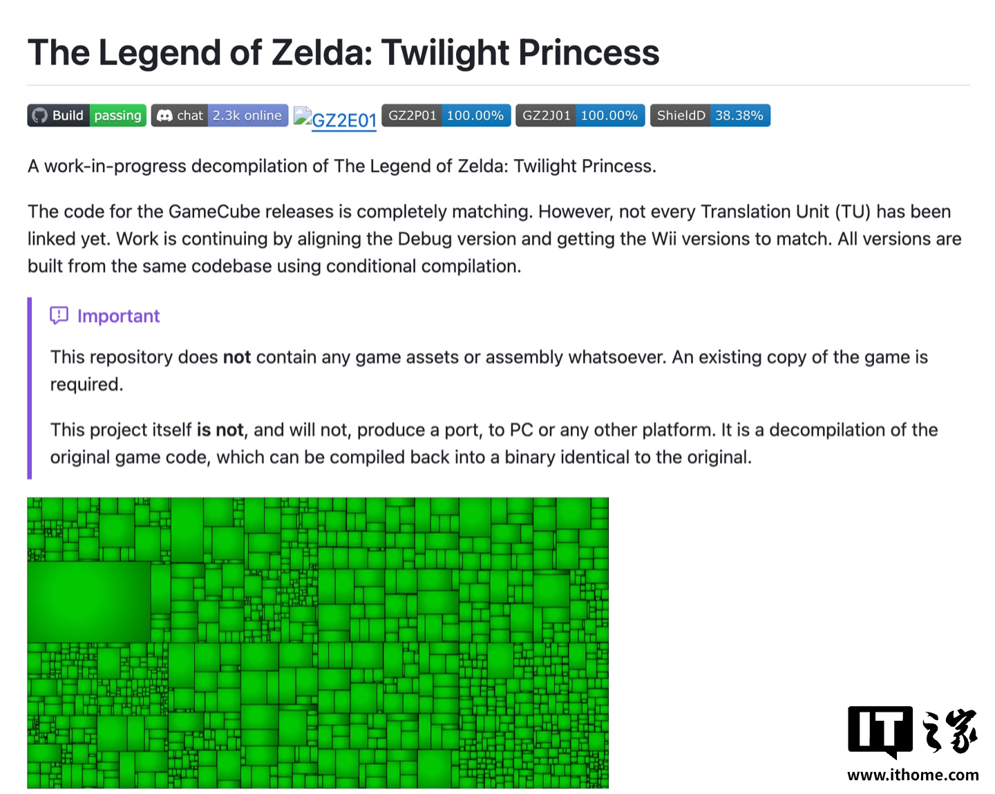 IT之家注意到,相应项目可在 GitHub 直接访问。开发者特别提到,若没有塞尔达游戏反编译社区及 GameCube / Wii 反编译社区的支持,该项目不可能完成。其个人投入开发时间已超 1000 小时,且后续仍有工作待完善。