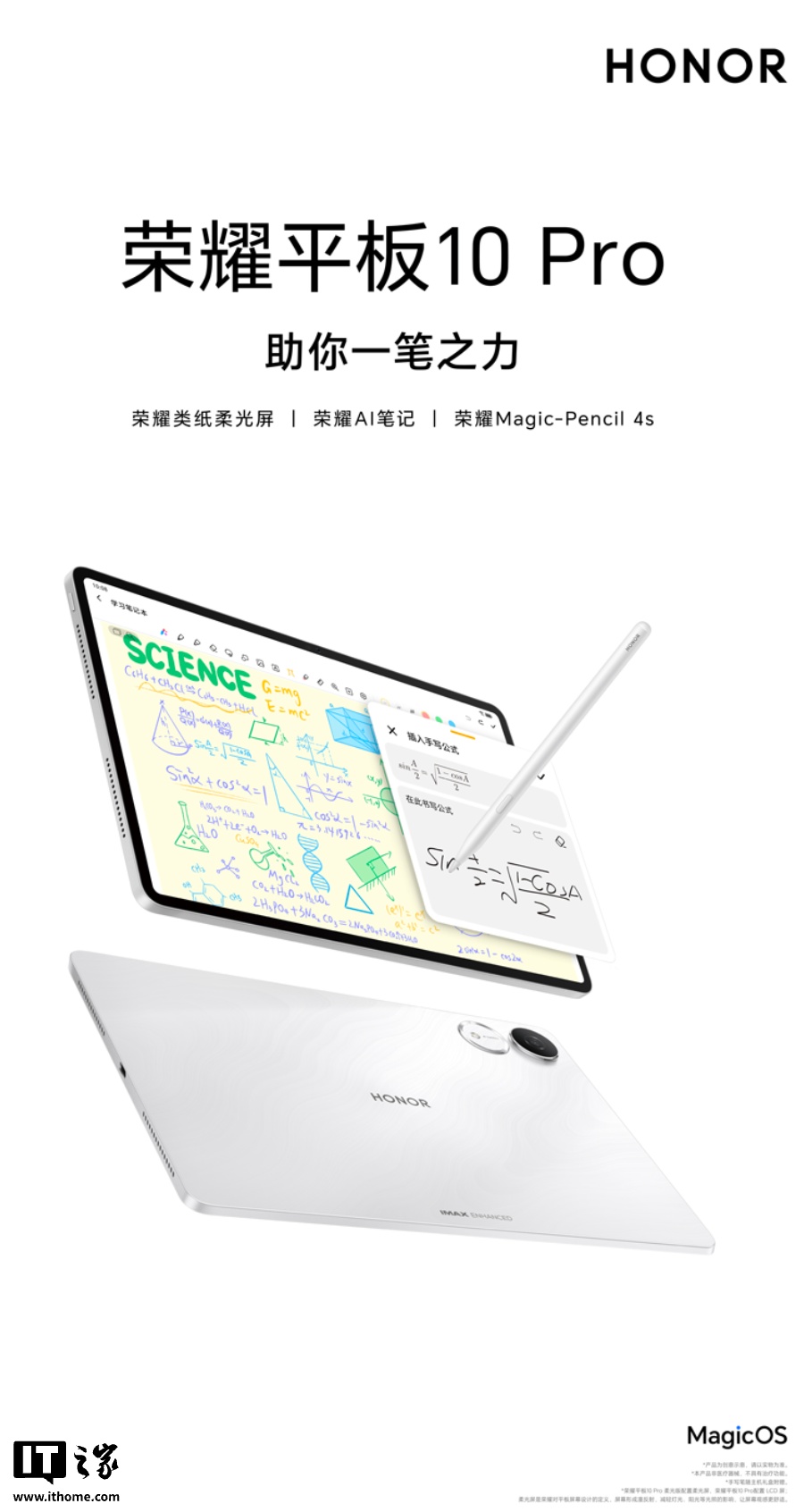 该机配备一块 11.5 英寸绿洲护眼屏,匹配荣耀 Magic-Pencil 4s,搭载 12GB RAM 和 256GB 存储空间,提供“庐烟紫”配色。