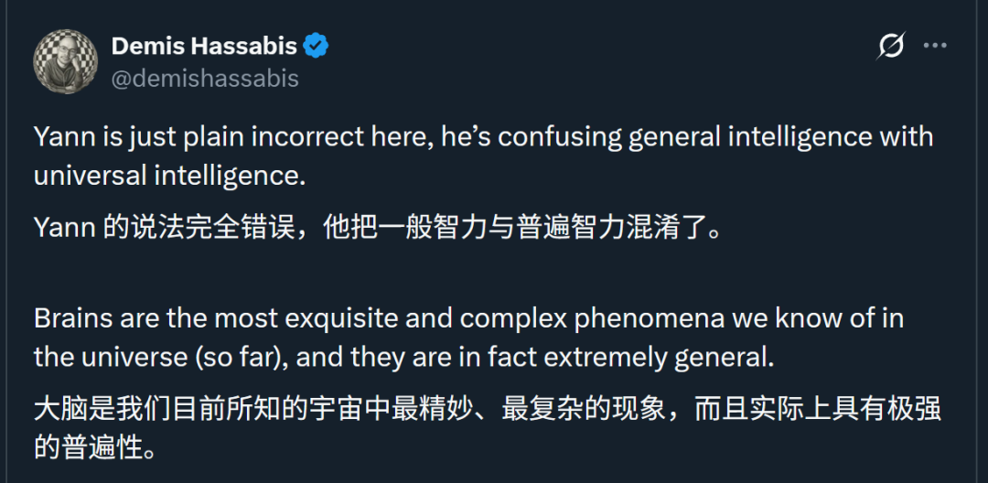 然而,这一观点很快遭到了哈萨比斯的直接回怼。哈萨比斯表示:
