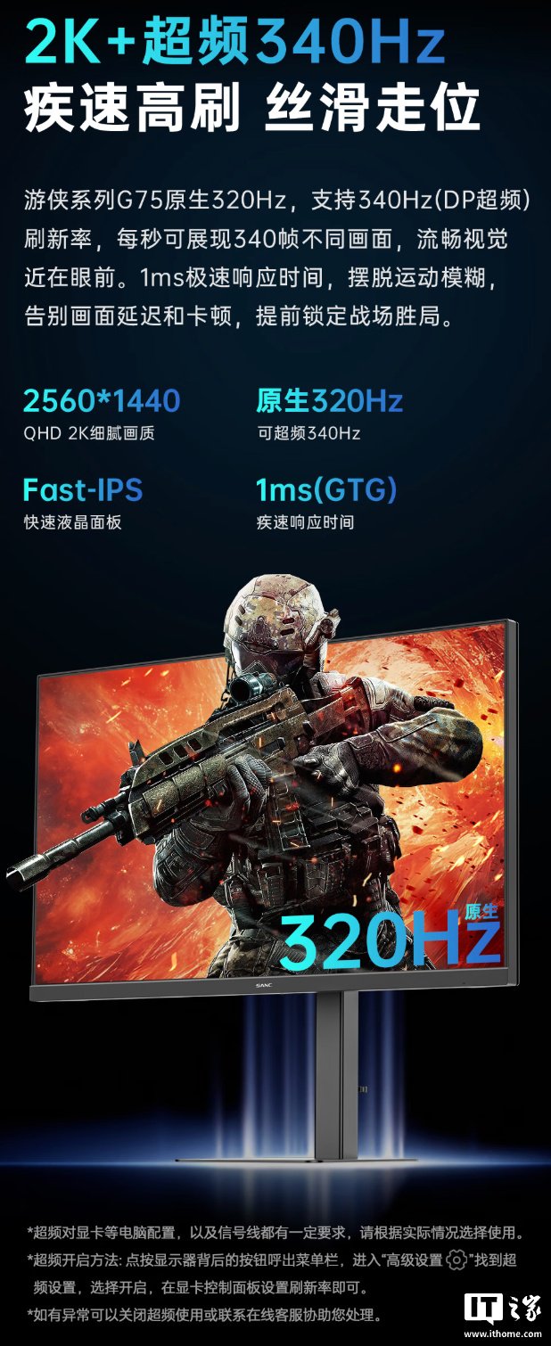 IT之家 12 月 24 日消息,盛色现已在京东上架“游侠 G75”27 英寸显示器,这款显示器主打 2K 340Hz,定价为 1166 元,部分地区国补后到手价低至 1049.4 元。
