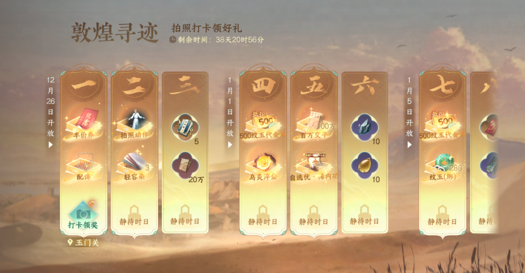 12 月 26 日维护更新后,开放【风烟万里敦煌道】正传剧情。