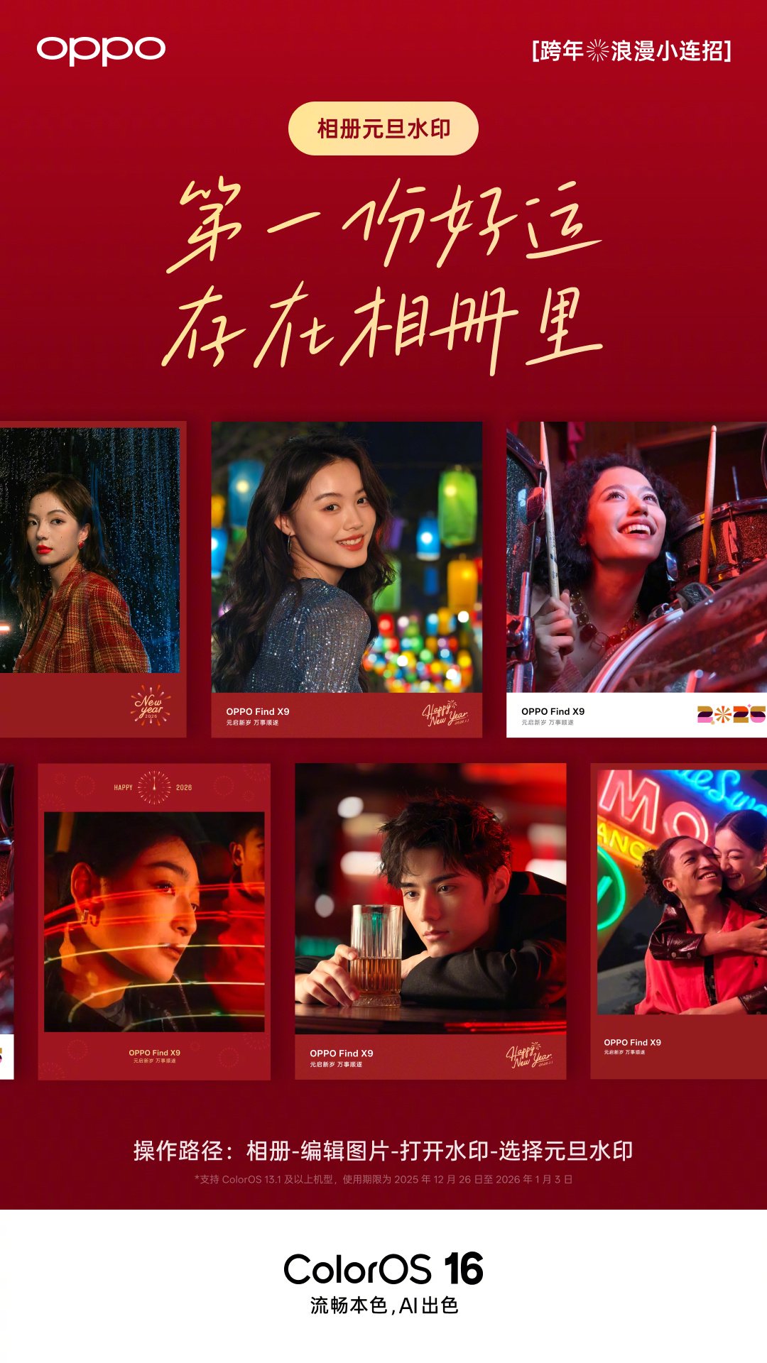 IT之家 12 月 26 日消息,ColorOS 今日宣布,元旦将至,OPPO 相册元旦水印已上线。将新年的第一份好运和难忘的回忆,放在相册里吧。
