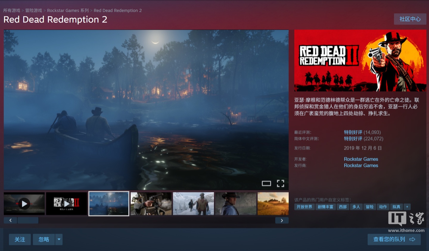 IT之家 12 月 27 日消息,Rockstar 大作《荒野大镖客:救赎 2》PC 版现已开启新一轮 2.5 折特价促销,Steam 国区 69.75 元,原价 279 元,截至 2026 年 1 月 6 日。