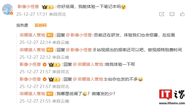 值得一提的是,“荣耀猎人营地”账号昨日在微博发文透露了新品进展:“目前还在研发,体验我们也会招募,在后面。”
