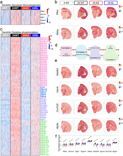 为进一步解析机制,研究采用空间转录组学技术分析不同年龄与处理条件下的小鼠脑组织基因表达。结果显示,一组在正常衰老过程中表达上调、在 AD 状态下下调、经 SL-ZF-01 干预后又恢复表达的基因,显著富集于氧化磷酸化、糖酵解、ATP 生成等能量代谢相关通路。