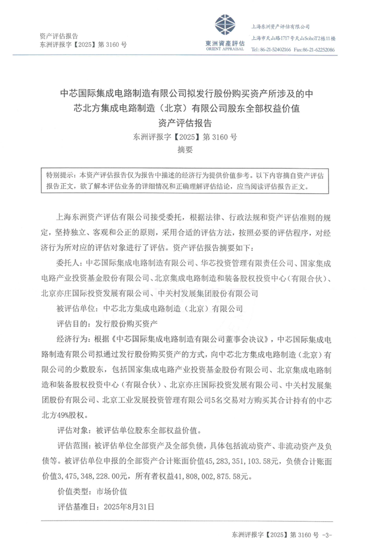 IT之家 12 月 30 日消息,中芯国际昨日晚间披露发行股份购买资产暨关联交易报告书草案,公司拟向国家集成电路基金等 5 名中芯北方股东发行股份购买其所持有的标的公司 49.00% 股权,交易价格 406.01 亿元。
