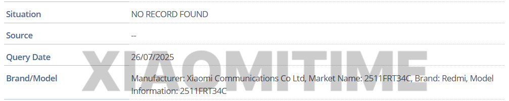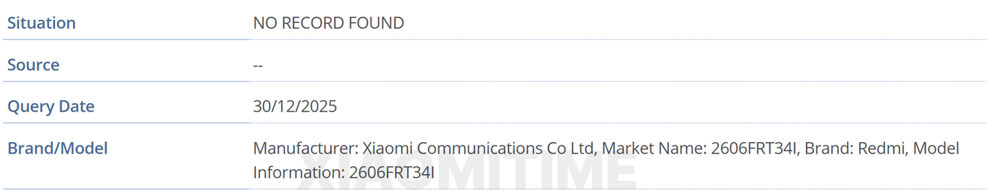 从型号来判断,“2606FRT34I”前缀“2606”暗示该设备的潜在发布窗口为 2026 年 6 月;中间字母“RT”明确代表 REDMI Turbo 产品线,区别于代表 POCO 品牌的“PC”;后缀“I”则锁定印度市场。