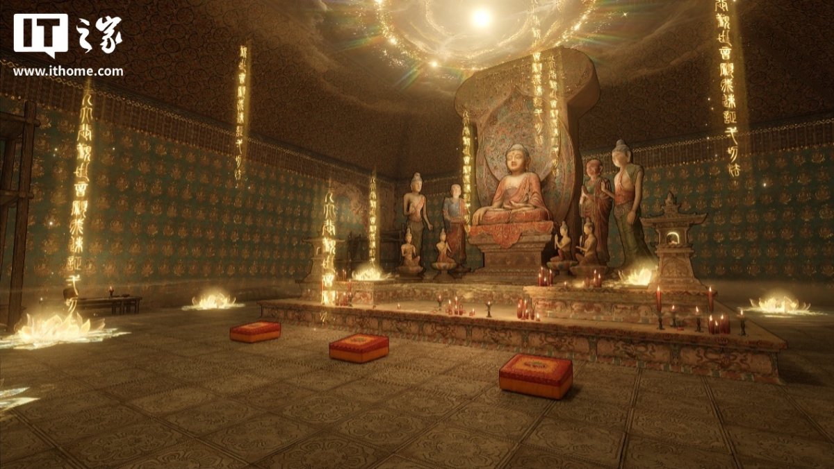 冥想状态拍摄而当我们来到莫高窟内的大佛石像前,再次使用“冥想”技能,也会获得截然不同的视觉观感,仿佛虔诚的祷告被已经被佛看见,成佛大道又近了一步。