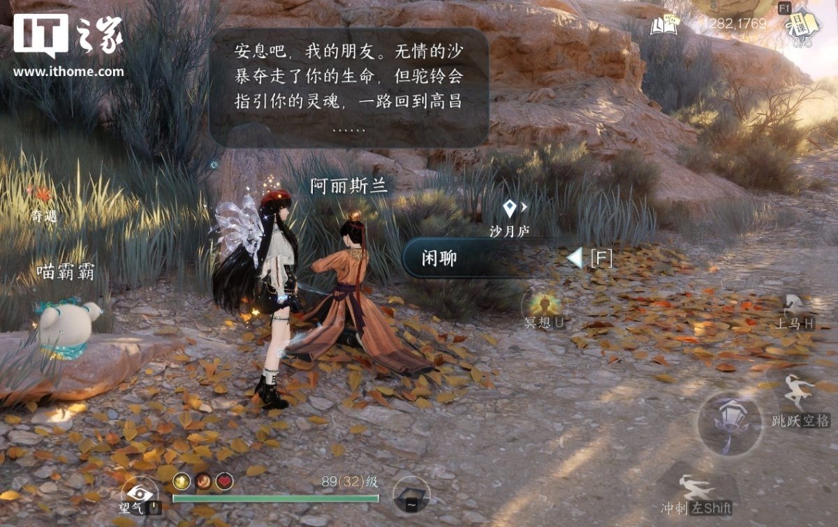 在第一个传送残壁附近,一位打扮并不像西域人士的“公子”正在对着一块石碑磕头,走近一问才知道,原来她的朋友被沙暴吞噬,永远留在了沙漠之中,而她正在碑前为其祷告,希望友人的灵魂得以安息。如果你和她闲聊,她还会告诉你更多沙漠的恐怖之处,可谓细节满满。