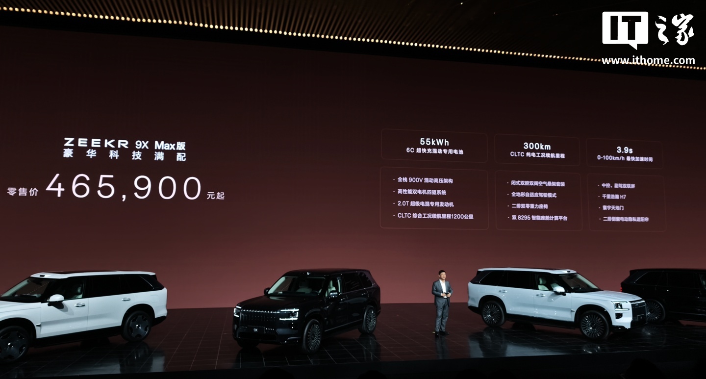 IT之家 12 月 31 日消息,极氪官方今日宣布,50 万级豪华旗舰 SUV 极氪 9X 在 12 月交付突破 10000 台。该车售价 46.59 万元起。