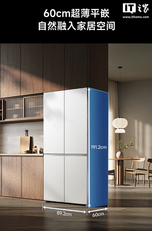 据介绍,这款冰箱提供了冰晶白、星锻银、杏色玻璃三种配色可选,支持 60cm 超薄平嵌、十字精细分储;支持超一级能效,号称“全年节省约 3 个月冰箱电费”;支持 NFC 、食材临期提醒功能。