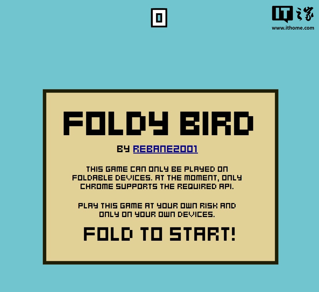 X 平台用户 Rebane 于 1 月 3 日分享了一段视频,他表示自己制作了《Flappy Bird》小游戏的特别版,命名为《Foldy Bird》,需要用户不断开合折叠屏手机来让小鸟蹦起来。