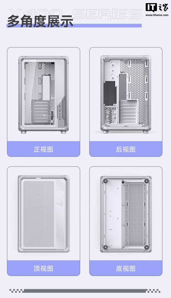 IT之家 1 月 5 日消息,乔思伯现已推出 X400 系列机箱银白色版本(X400 WHITE),该机箱采用分仓式海景房架构,沿用 BO400 系列外骨骼框架造型,支持背插主板,支持免工具卡口开合顶盖、面板等,维护更加方便,售价 649 元。