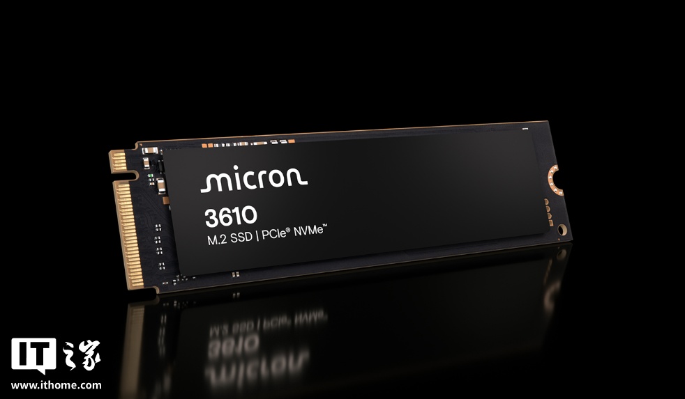 IT之家 1 月 7 日消息,美光今日推出了一款 3610 SSD,该产品专为超薄笔记本电脑和无风扇系统设计,具备 PCIe 5.0 速度、QLC(四层单元)NAND,以及最高 4TB 容量。