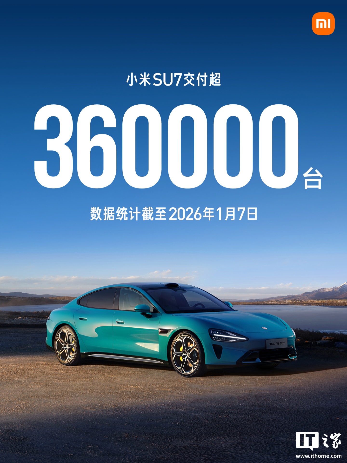 IT之家 1 月 7 日消息,小米汽车官方今日公布数据,第一代小米 SU7,2024 年 3 月 28 日正式发布,仅 1 年 9 个月时间,交付超过了 36 万辆,月均超过 1.7 万辆。过去一年,成为最畅销的 20 万以上的轿车。