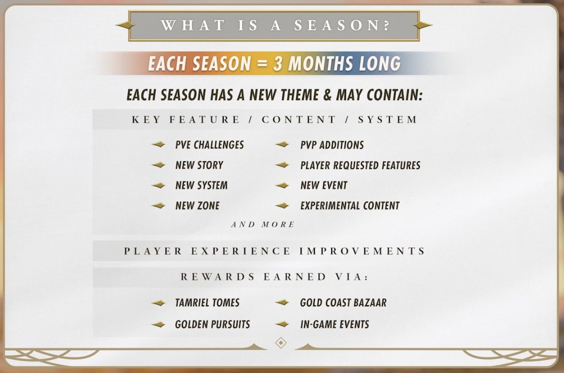 伴随赛季制上线,名为“泰姆瑞尔典籍(Tamriel Tomes)”的战斗通行证系统将正式实装。该系统分为免费版、15 美元标准版及 30 美元豪华版三档,玩家可通过游玩解锁护甲套装、家居及高级货币等奖励。
