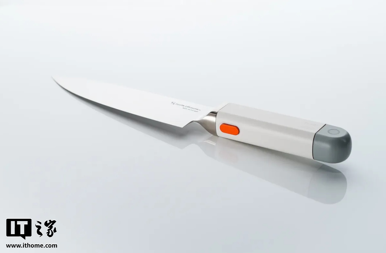 据介绍,这把刀的核心理念是通过高频微振动来降低切割阻力,让刀刃更轻松地切入食材。还能减少食材粘刀的情况。