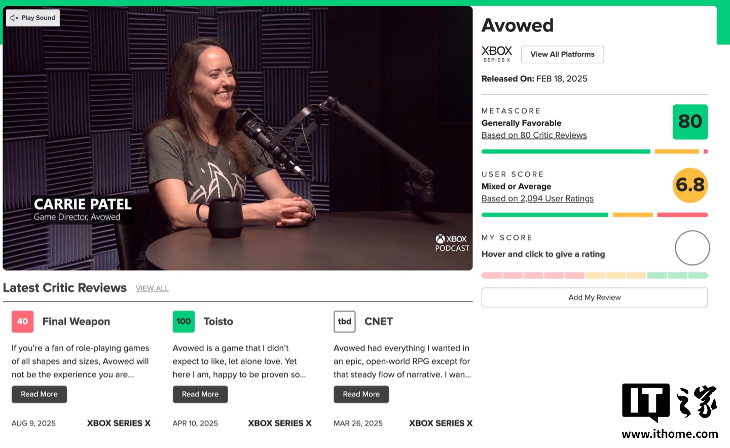 IT之家注意到,目前《Avowed》的 PS5 版本已开启预购。虽然该作的知名度不及黑曜石旗下部分招牌作品,但其整体口碑表现不俗,在 Metacritic 平台 Xbox 版的媒体综合评分约为 80 分,属于评价相当稳健的水准。