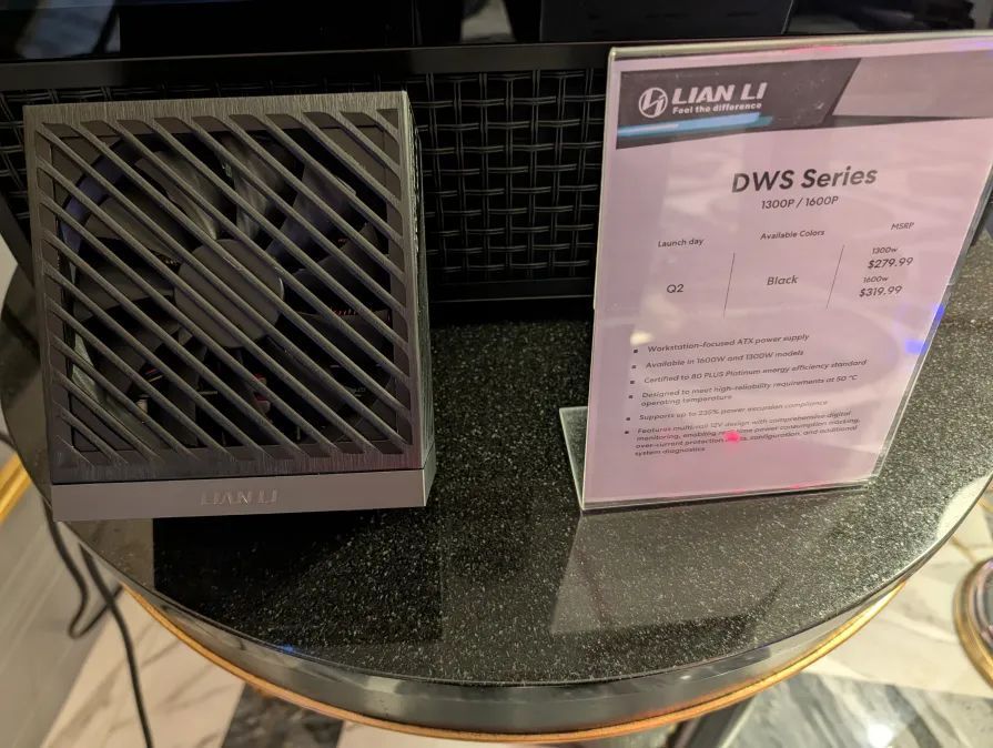即将上市的机箱鬼斧 LANCOOL 4 亦有展示。其在曲面玻璃前板上“嵌入”了三颗 140mm 风扇,三个侧面均覆盖钢化玻璃,此外还具有悬浮式主板托盘和可倾斜的底部风扇位。