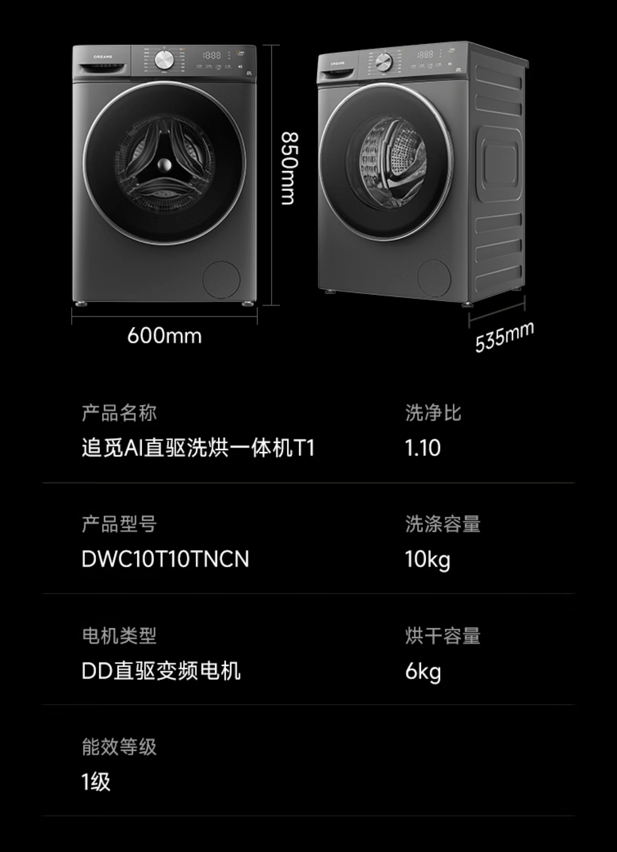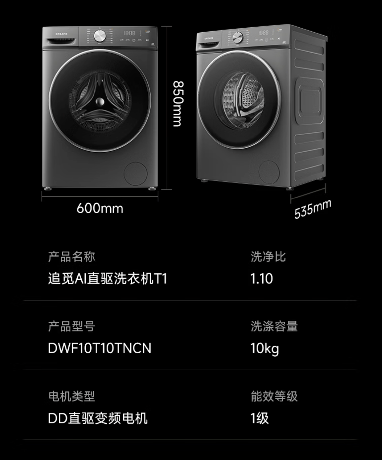 追觅 T1 滚筒洗衣机 / 洗烘一体机 10kg 官方定价 2061 元 / 2296 元,今日京东自营直降 500 元 + 可叠加国补,支持 12 期免息。