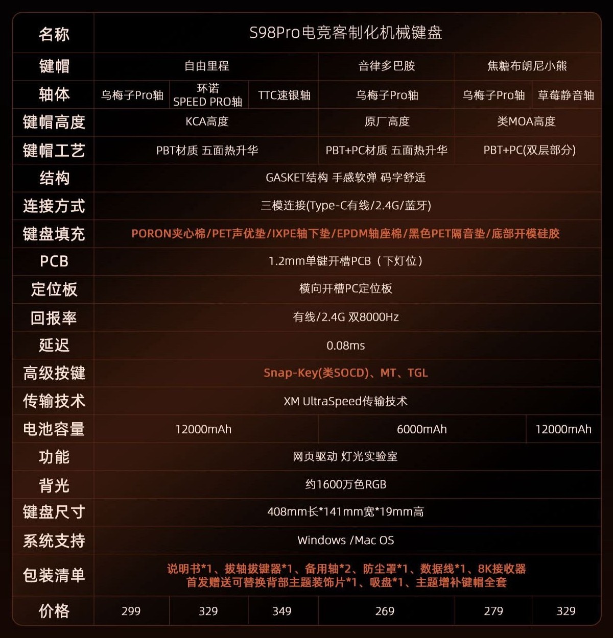 焦糖布朗尼小熊 - 乌梅子 Pro 轴 - 6000mAh 电池:279 元;