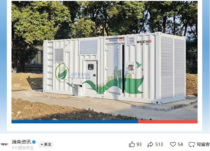 据介绍,潍柴动力研发的氢内燃机发电机组在江苏省无锡市的华光环能微电网示范项目中,成功实现国内首次纯氢发电并网稳定运行。此次并网运行的发电机组核心是定制化开发的 WP13 氢内燃机。